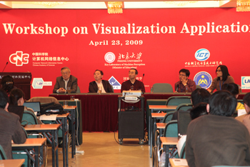 4月20日至23日的IEEE PacificVis 2009会议是首次在我国举办的可视化领域的专门化高等级国际会议,会议主席由北京航空航天大学赵沁平教授与北京大学查红彬教授共同担任。由北京大学,北京航空航天大学,中科院计算所和计算机网络中心以及北京应用物理与计算数学研究所联合主办,由北京大学机器感知与智能教育部重点实验室承办。会议得到了中国国家自然科学基金委和惠普中国实验室的支持。本次会议吸引了来自美国,德国,法国,荷兰,以色列,日本,澳大利亚,台湾,香港,澳门以及中国大陆等20余个国家与地区的相关研究人员,以及多位在可视化领域享有国际声誉的学者,如IEEE