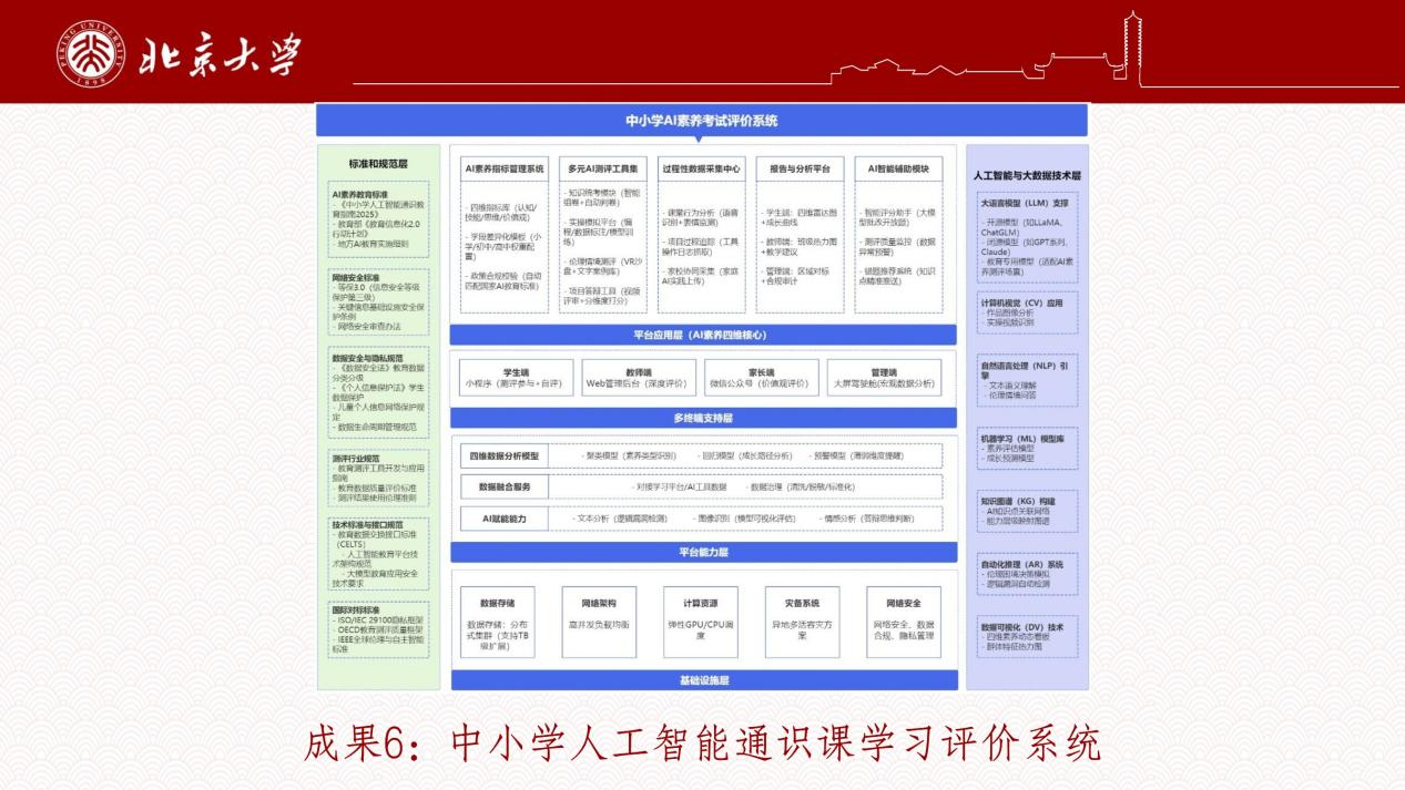 北大智能学院联合合作单位发布了“中小学人工智能通识课学习评价系统”。突破传统评价局限,围绕“认知能力、技能水平、思维品质、价值观念”四大维度,构建开放式数字化测评体系。利用AI技术实现过程性与结果性评价平衡,生成学生AI素养成长档案。该系统强调智能化、标准化与合规化,为教学改进提供数据支撑,是构建未来AI教育评价体系的关键一步。